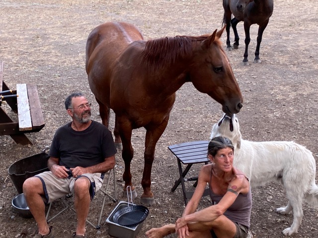 Well, I knew she was somewhere up that trail, but the trail was so blocked by fallen trees that our horses could not proceed. Surely Canela couldn’t have made it through, you might say. Only I knew she had. I know all about determination. So next morning Bob packed a chainsaw, strapped it on his saddle, and cut our way through that trail.